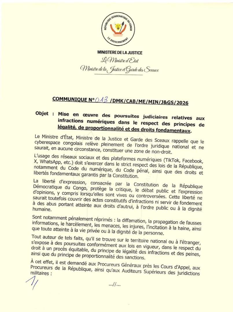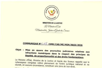 Dans un communiqué officiel publié le 3 mars 2026 à Kinshasa, le Ministre d’État, Ministre de la Justice et Garde…